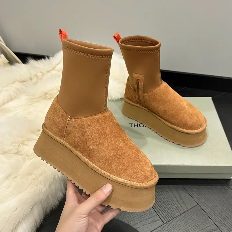 Suede Cotton Boots Snow Warm Ankle Chelsea Snow Boots 2024 Winter