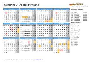 KALENDER 2024 Deutschland mit Feiertagen & KW online